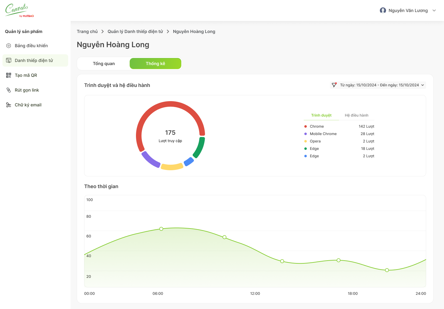 Danh thiếp sẵn sàng chia sẻ trực tuyến qua mã QR hoặc đường link.